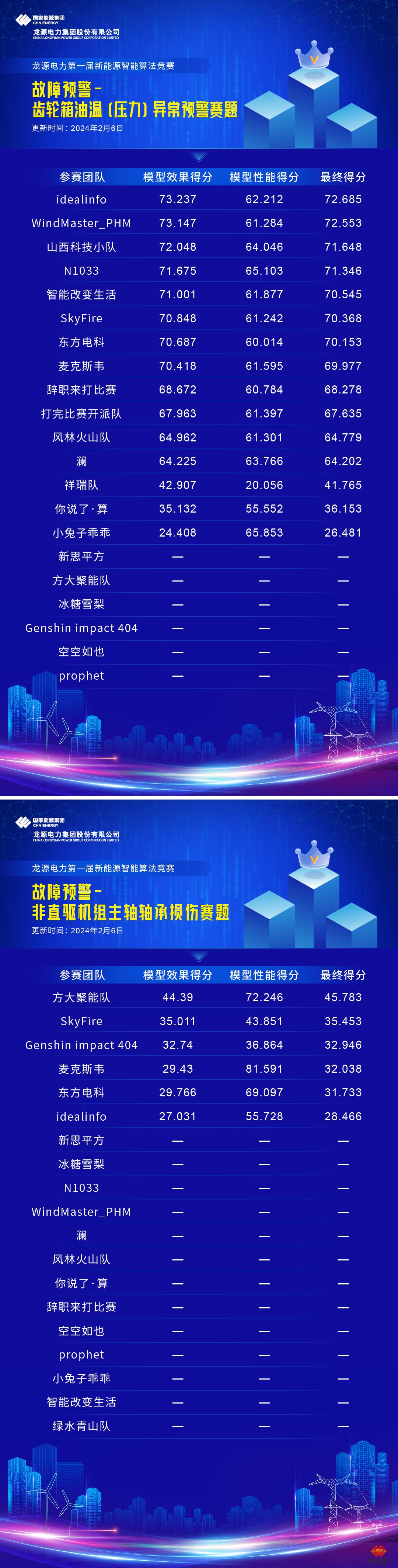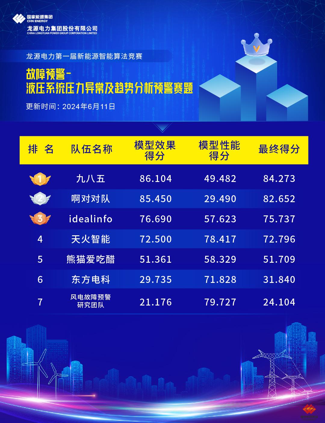 金年会电力第一届新能源智能算法竞赛成绩榜
